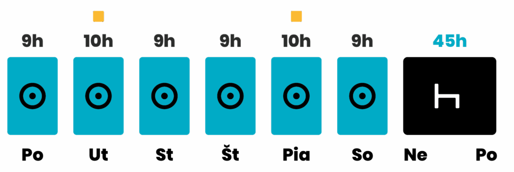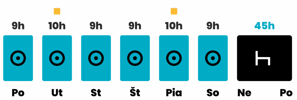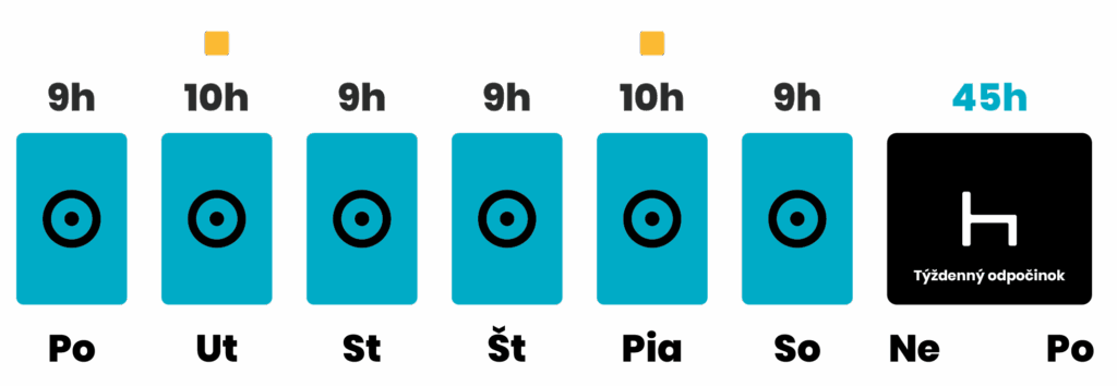 - Dve doby pravidelného týždenného odpočinku alebo