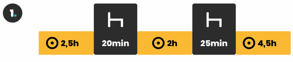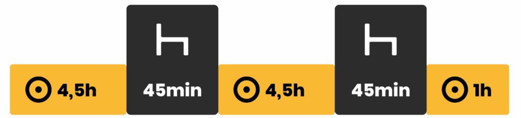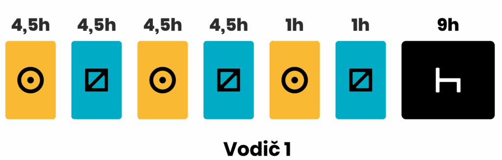 Po 4,5 hodiny šoférovania, vodič si musí zobrať prestávku aspoň na 45 minút, pokiaľ práve nezačal odpočinkovú prestávku.